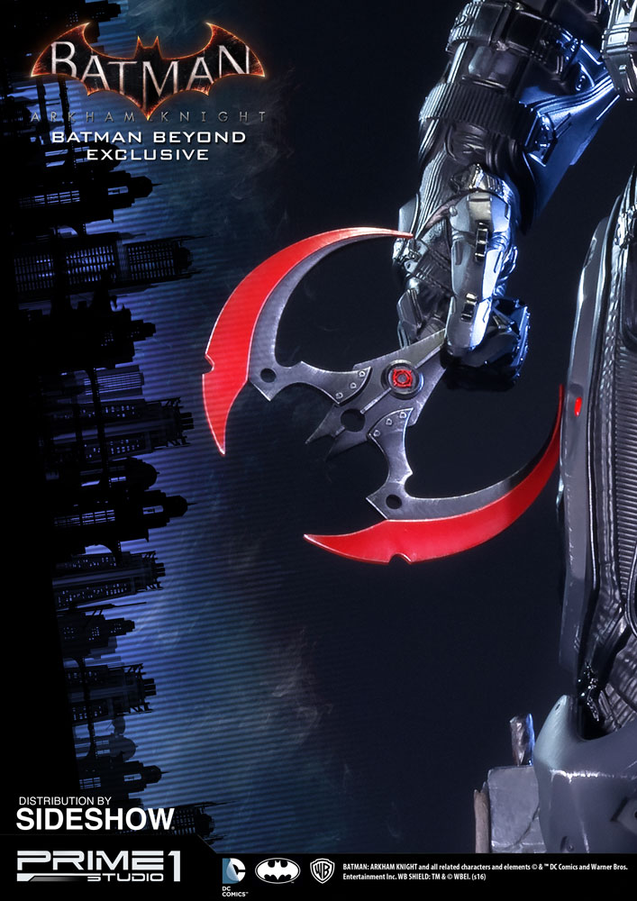 Batman beyond batarang the batarang is cast in resin and painted in with the standard redblack color scheme with silver accents. The figure is masterfully crafted based on the batman beyond suit from the batman. Arkham knight video game featuring a newly painted masked head sculpt with two interchangeable lower faces a cutting edge batsuit overall appearance in metallic grey with battle damage and a bright red bat symbol on chest a finely tailored black batcape to create dynamic flying poses an array of detailed.
